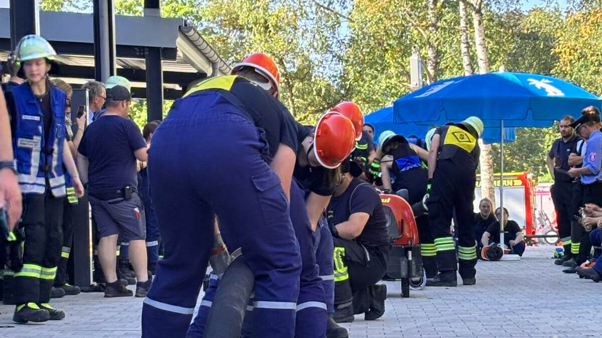 ins Gebäude geschickt und konnte drei Personen aus dem Gebäude retten, welche anschließend von vor dem Gebäude medizinisch betreut wurden. Parallel dazu wurde auch von zwei Trupps eine Wasserversorgung vom nahegelegenen Unterflurhydranten aufgebaut. Nachdem schließlich alle vermissten Personen gerettet worden waren, ging es zurück zu einem gemeinsamen Mittagessen.